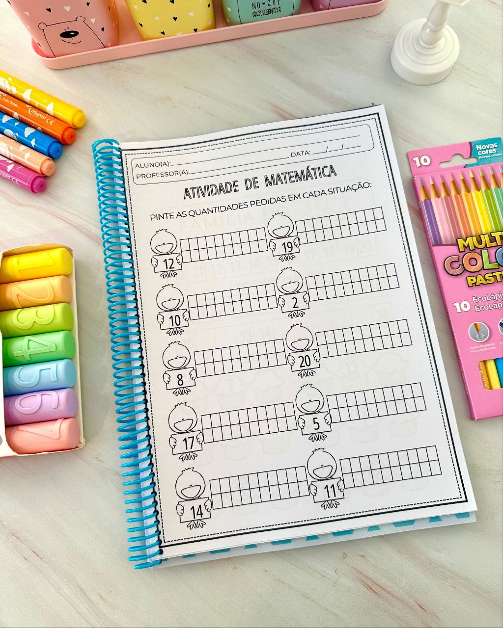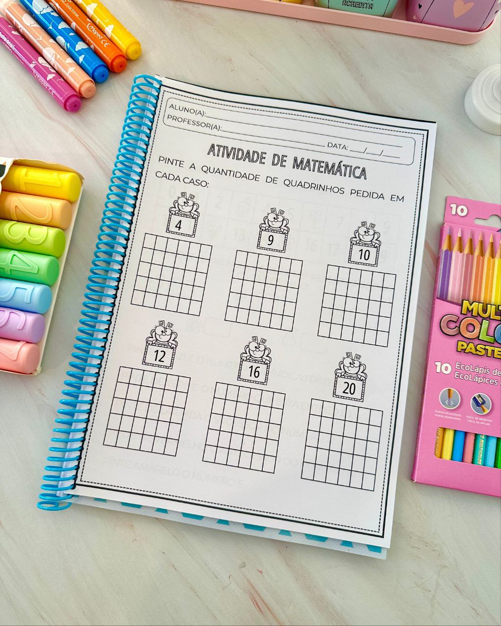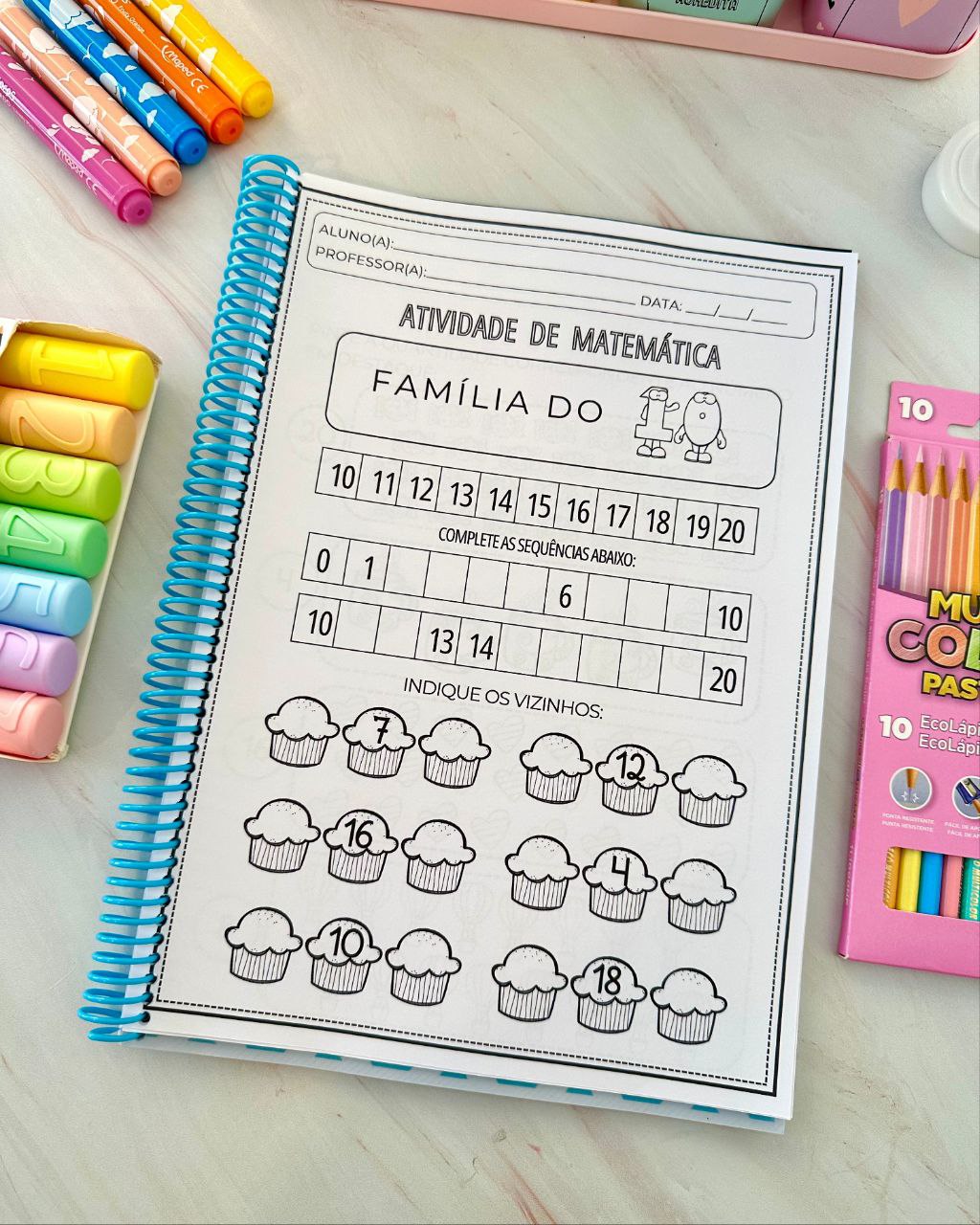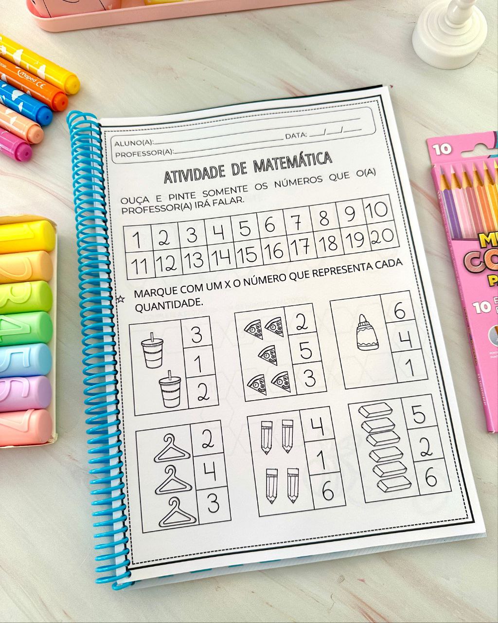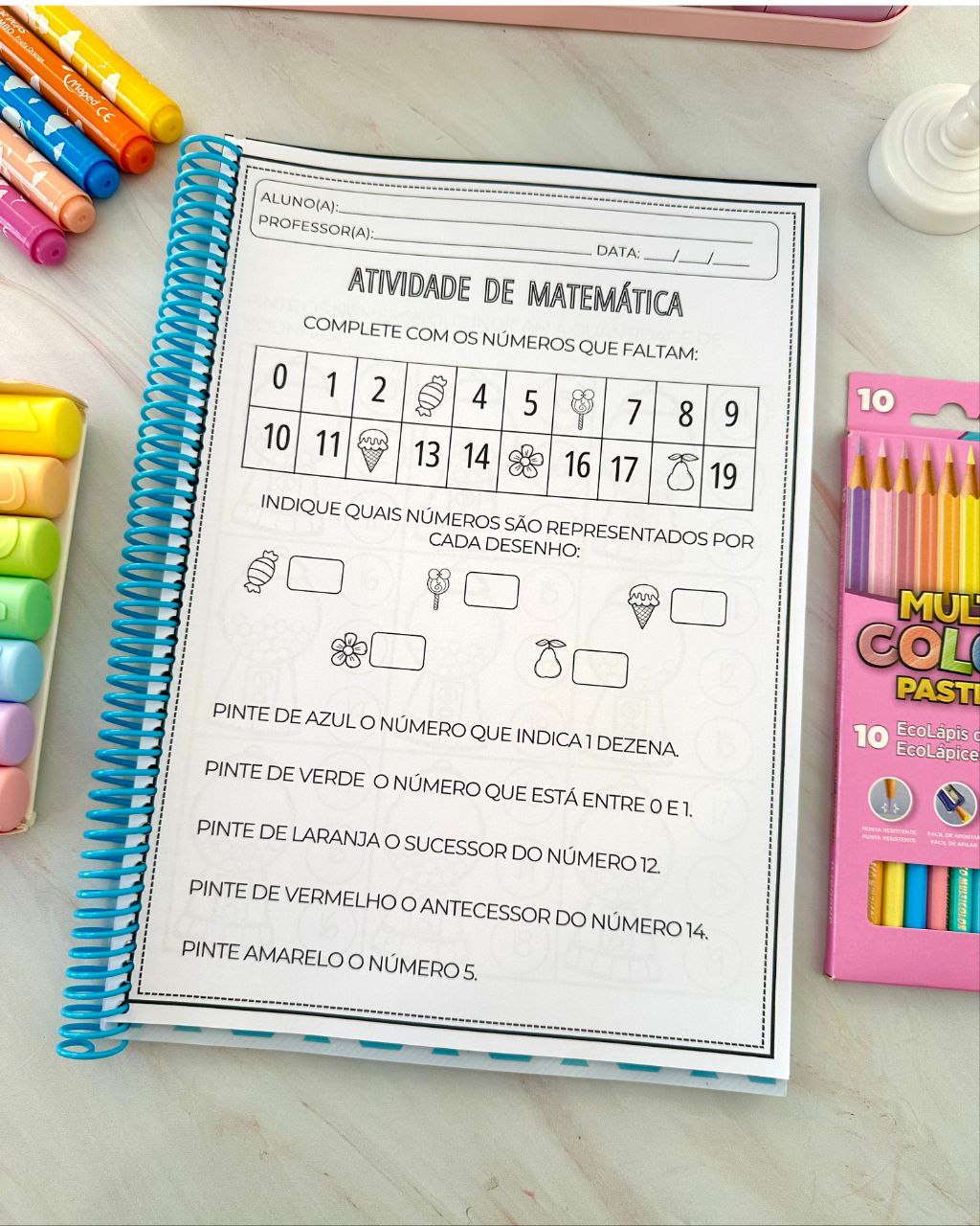 Apostila para trabalhar os numerais de 1 a 20 com crianças da Educação Infantil e séries iniciais do Ensino Fundamental. Material excelente para trabalhar diversas habilidades importantes e necessárias nessa faixa etária. Inclui 1 página para trabalhar cada numeral e 20 páginas com atividades envolvendo vários numerais ao mesmo tempo.