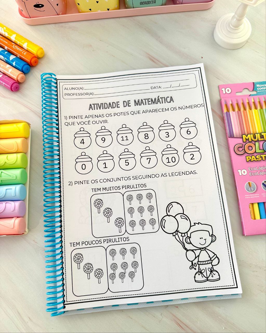 Arquivo com 40 páginas de atividades para colorir, que incluem conteúdos como: