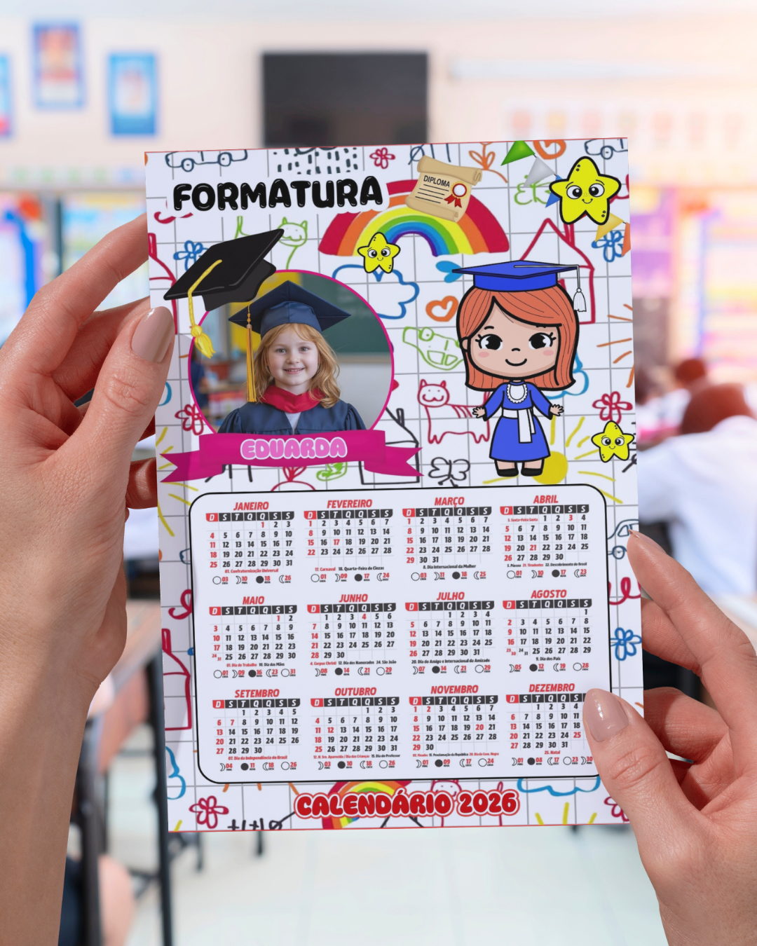 Nosso calendário personalizado de formatura é perfeito para marcar essa conquista com muito carinho, cores e emoção. 💖📚