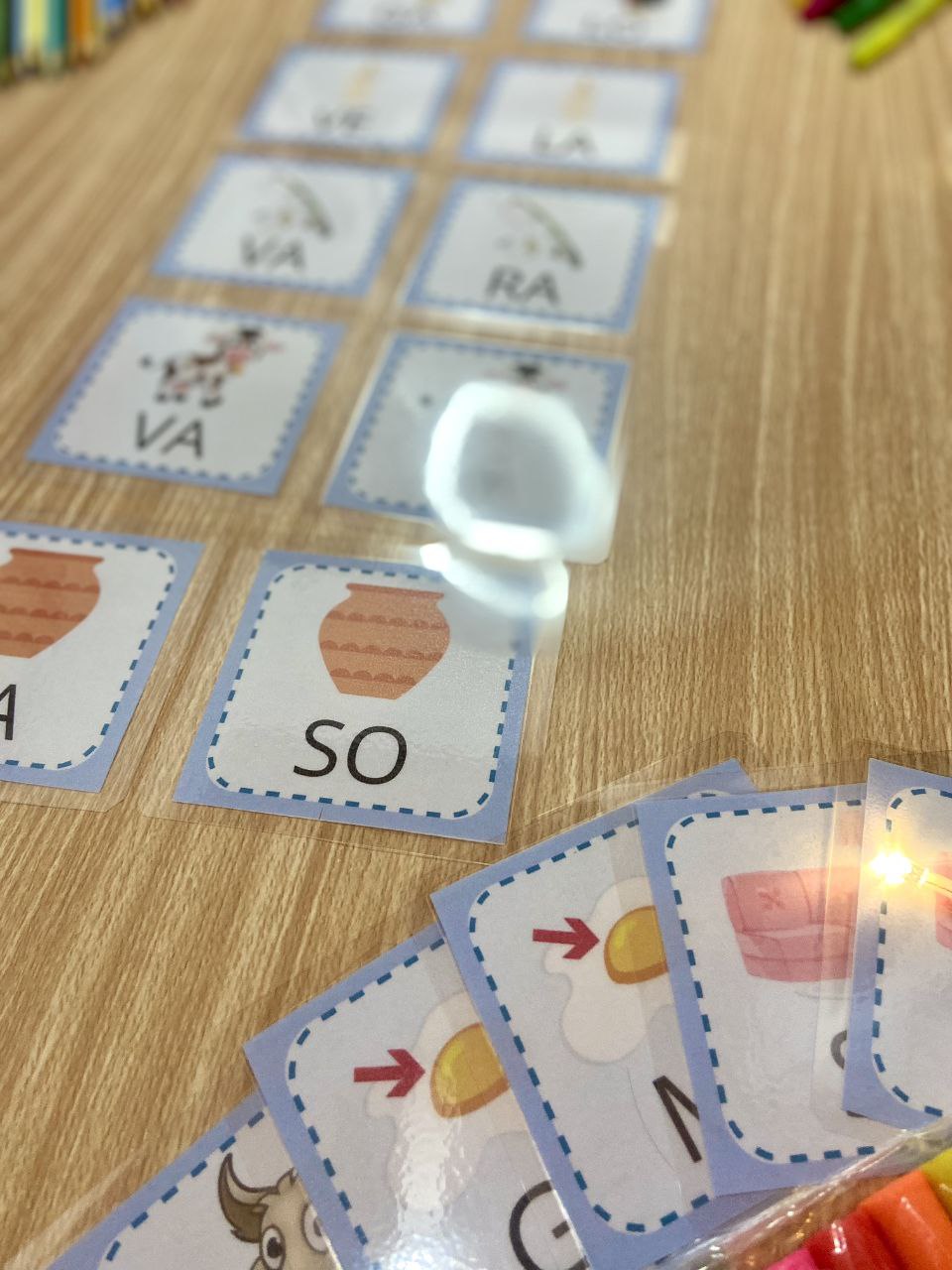 Através desse recurso podemos aplicar diferentes mediações, como por exemplo formar novas palavras, mostrarpara a criançaque se mudarmos a posição das sílabas mudamos o sentido das palavras, e entregar as fichas para as crianças ordenarem.