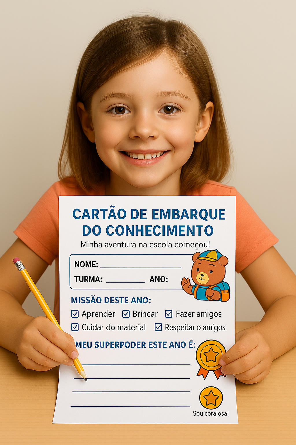 ✔️ Espaço para a criança escrever seu superpoder