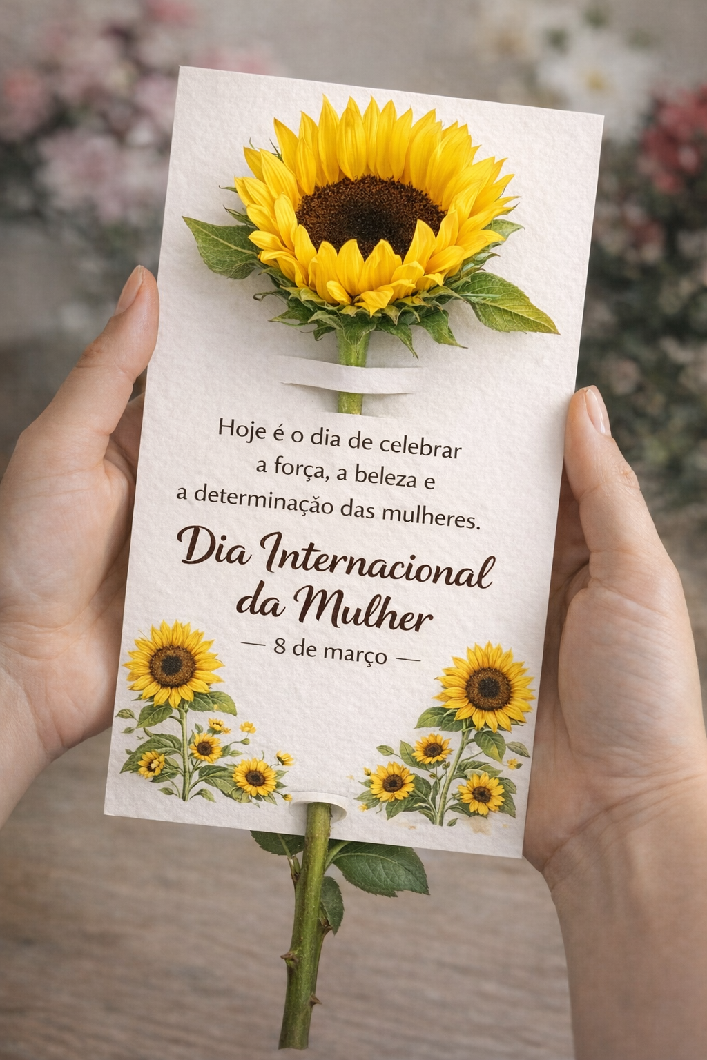 Um cartão delicado, criativo e cheio de significado para homenagear as mulheres de forma especial no Dia Internacional da Mulher – 8 de março 💛✨
