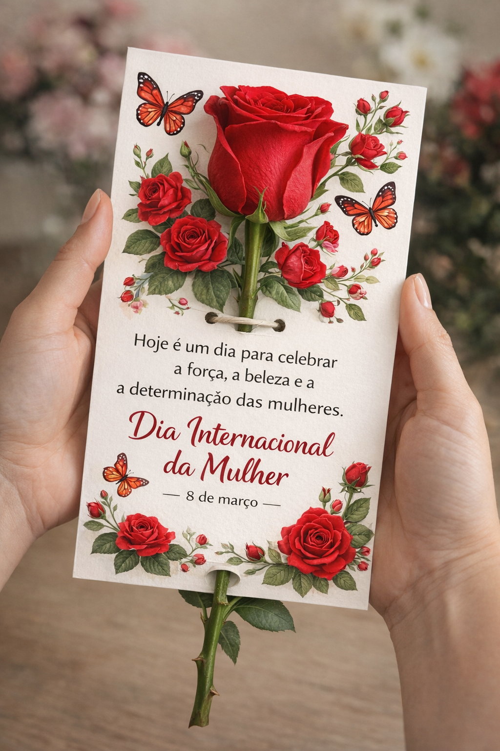 Um cartão delicado, elegante e cheio de significado para celebrar o Dia Internacional da Mulher de forma especial 💐