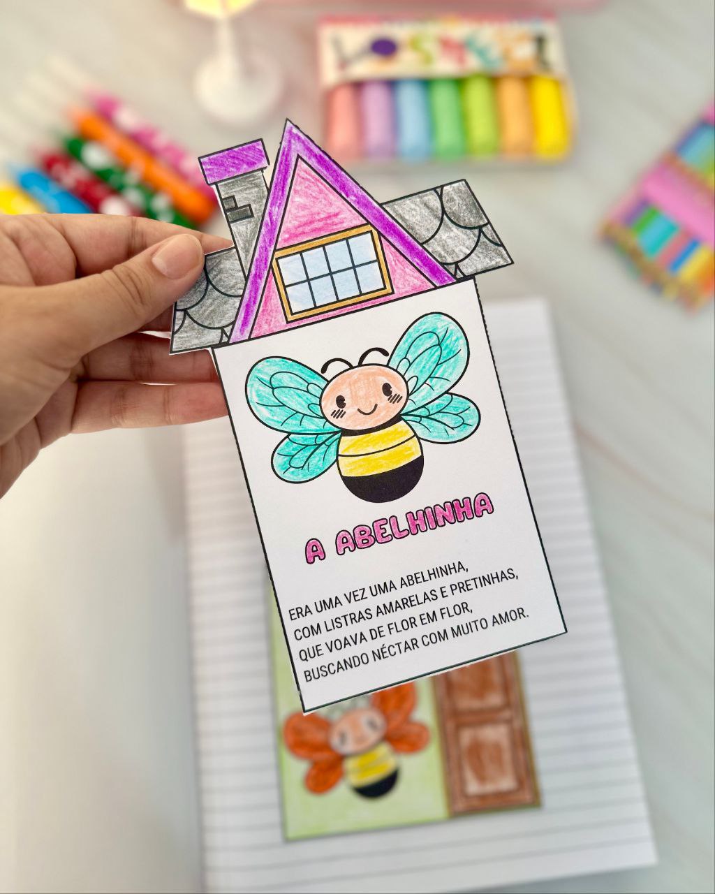 O material vai com 26 páginas de atividades para colorir, que inclui um pequeno texto relacionado à uma figura que inicia com cada letra do alfabeto.