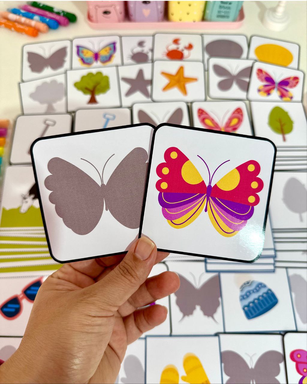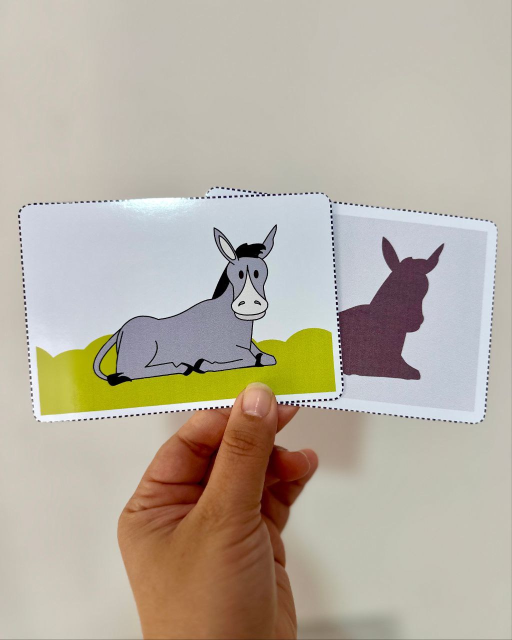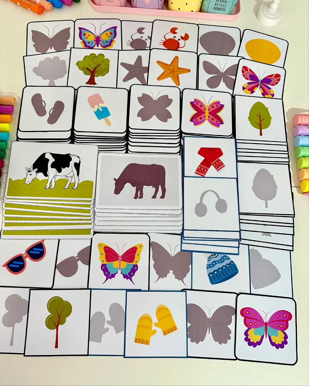 A atividade consiste em associar figuras às suas sombras, promovendo reconhecimento de formas, raciocínio lógico e concentração, de forma divertida e envolvente.