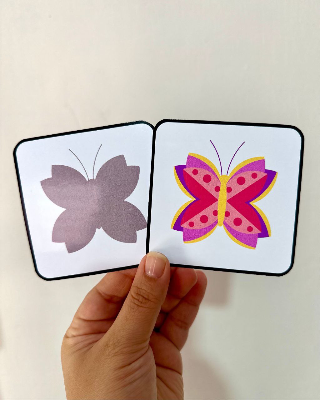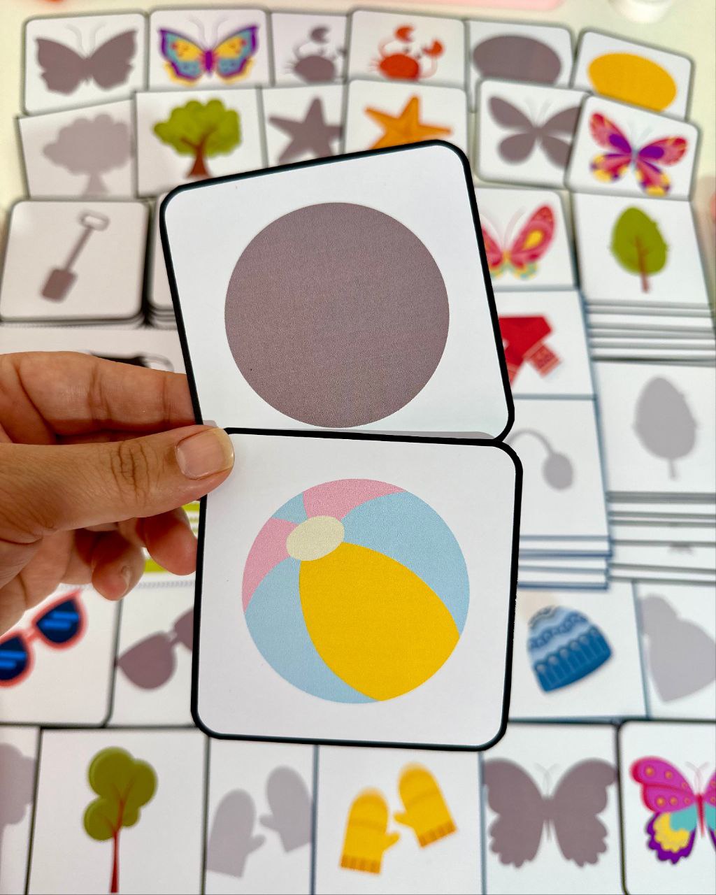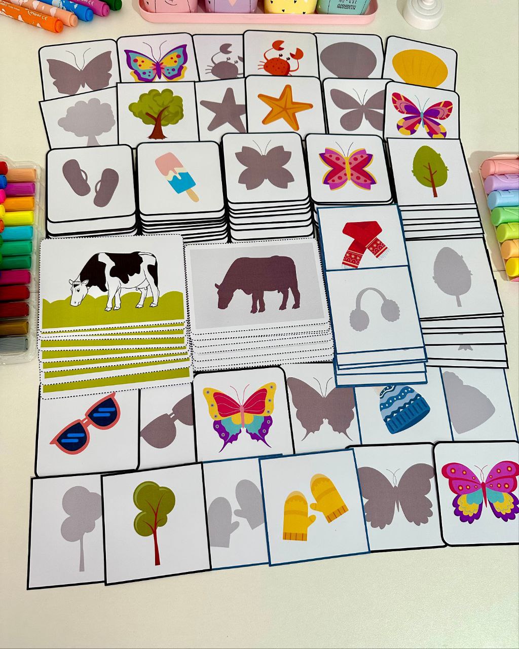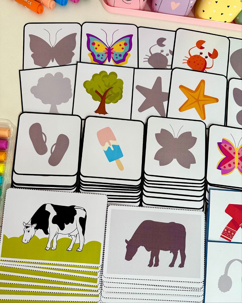 A atividade consiste em associar figuras às suas sombras, promovendo reconhecimento de formas, raciocínio lógico e concentração, de forma divertida e envolvente.