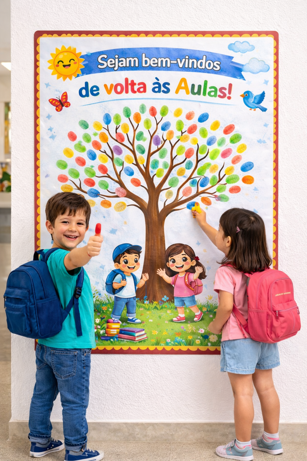 Painel educativo ideal para recepcionar os alunos no retorno às aulas, representando novos começos, crescimento e aprendizado. 💛