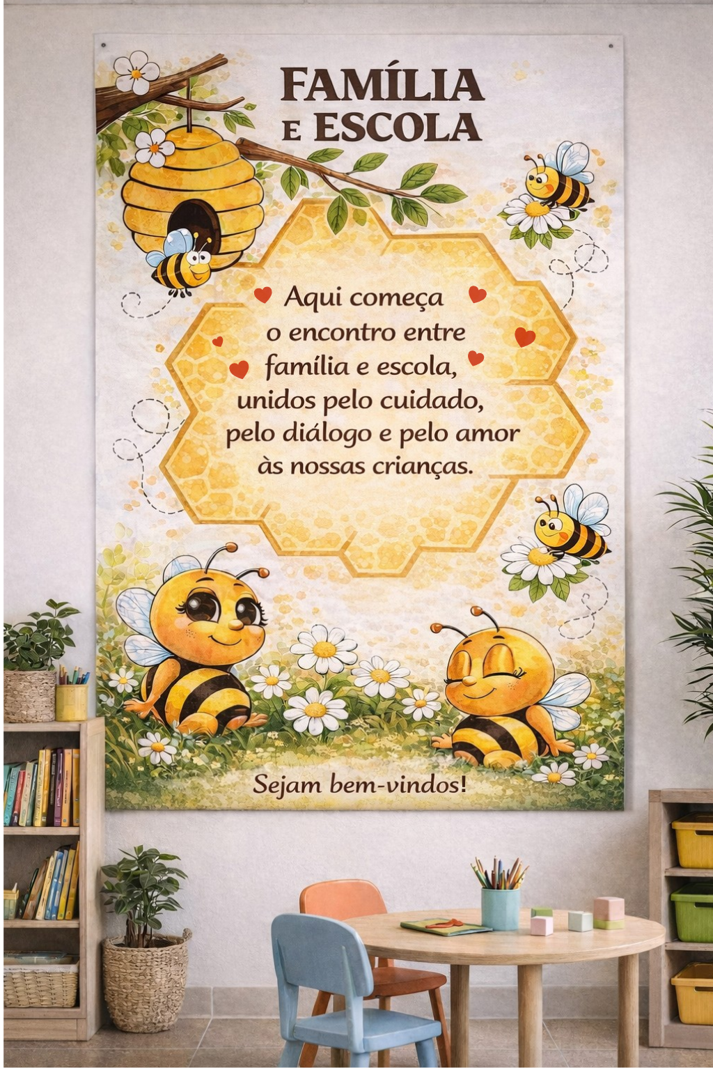 🐝 Painel – Família e Escola tema abelhinha 🐝