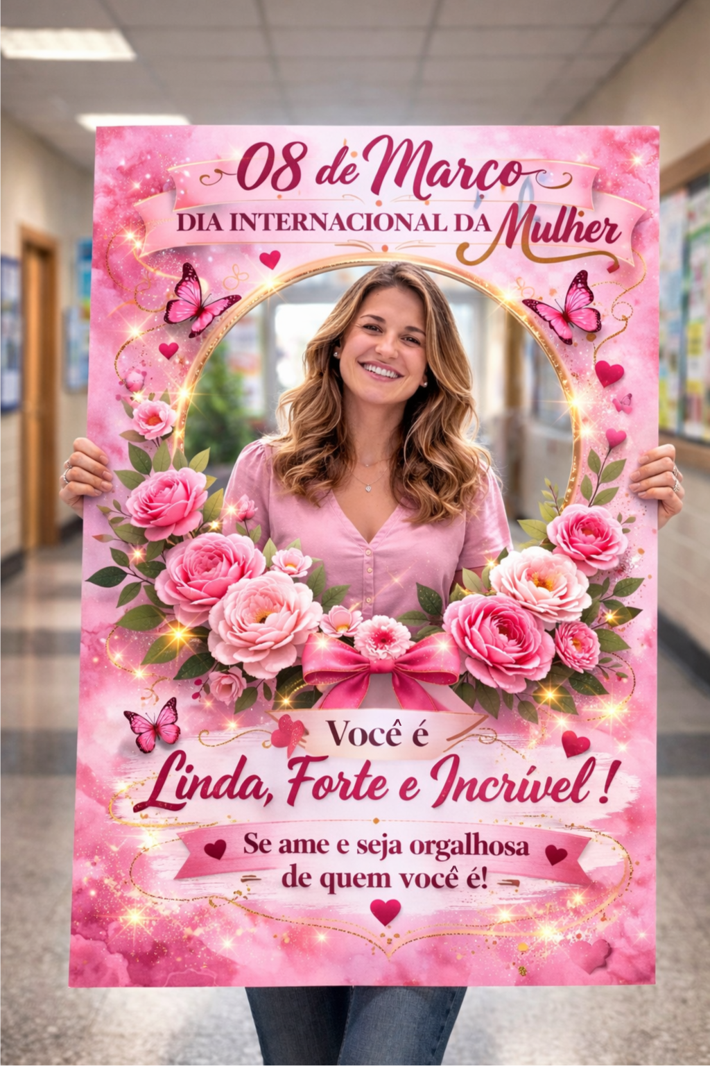 Uma opção linda e encantadora para celebrar o 08 de Março – Dia Internacional da Mulher na sua escola, empresa ou evento especial. Ideal para fotos comemorativas e momentos inesquecíveis!