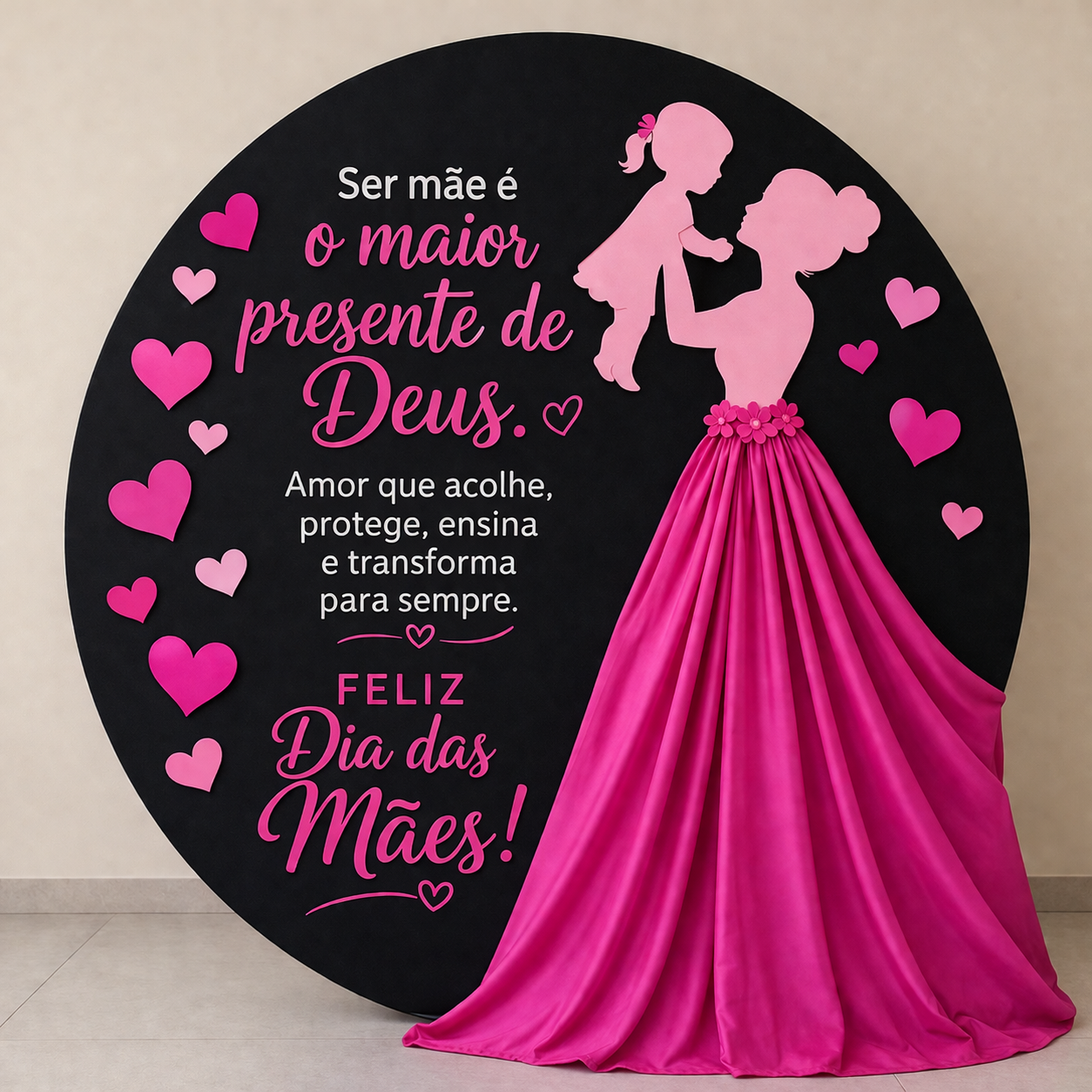 💖✨ PAINEL REDONDO DIA DAS MÃES – ROSA COM SAIA INTEGRADA ✨💖