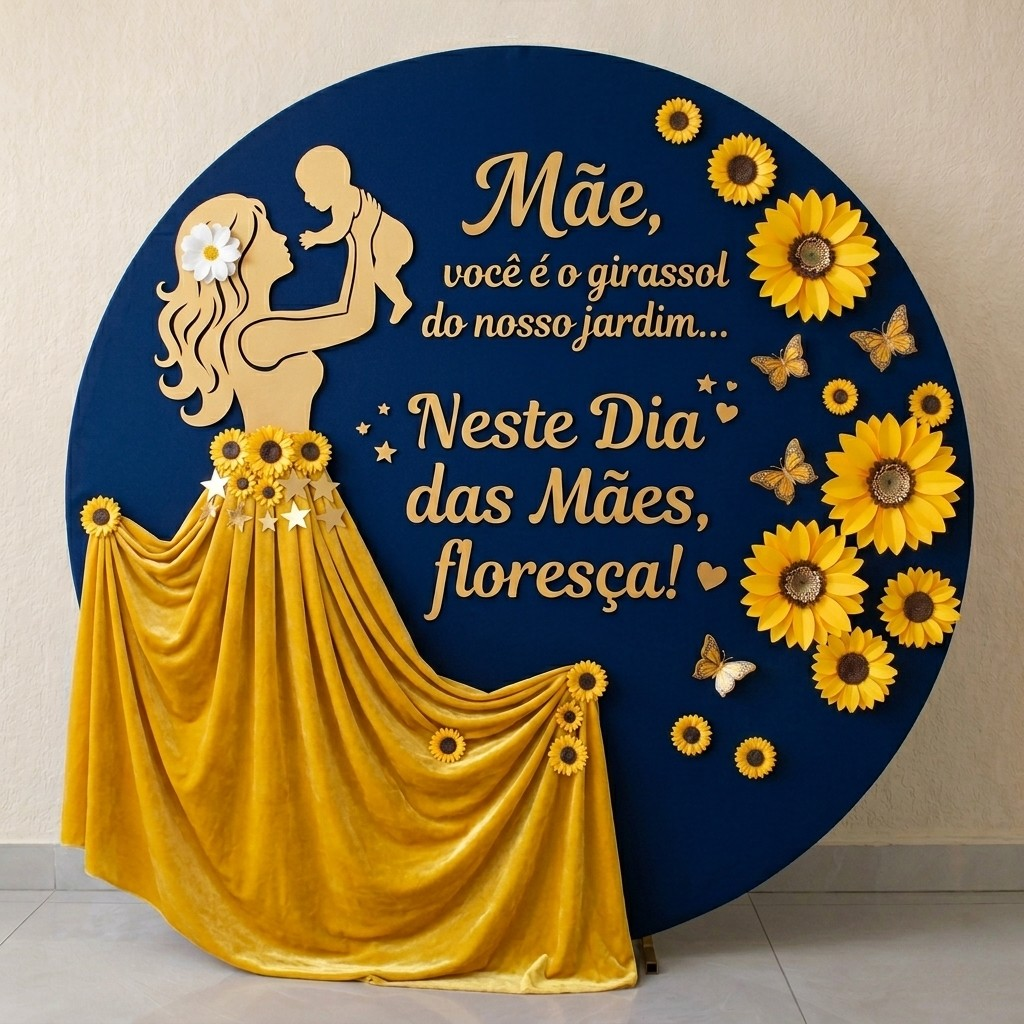 🌻✨ PAINEL REDONDO DIA DAS MÃES – TEMA GIRASSOL COM SAIA INTEGRADA ✨🌻