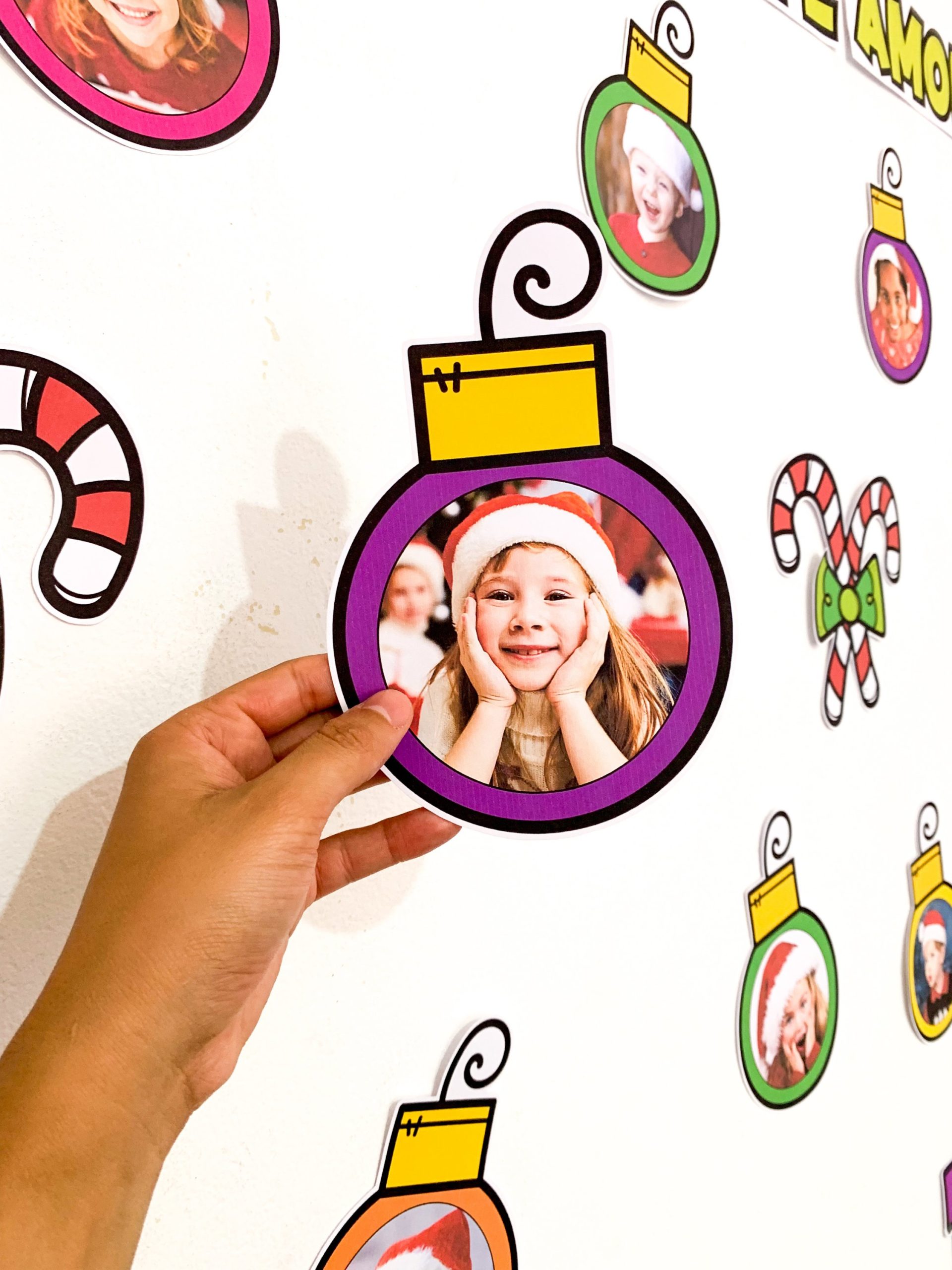 O Painel vai com elementos editáveis com a opção de adicionar a foto das crianças.
