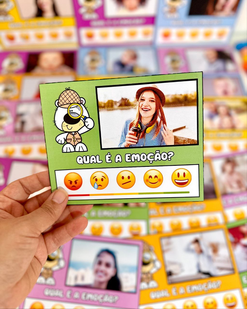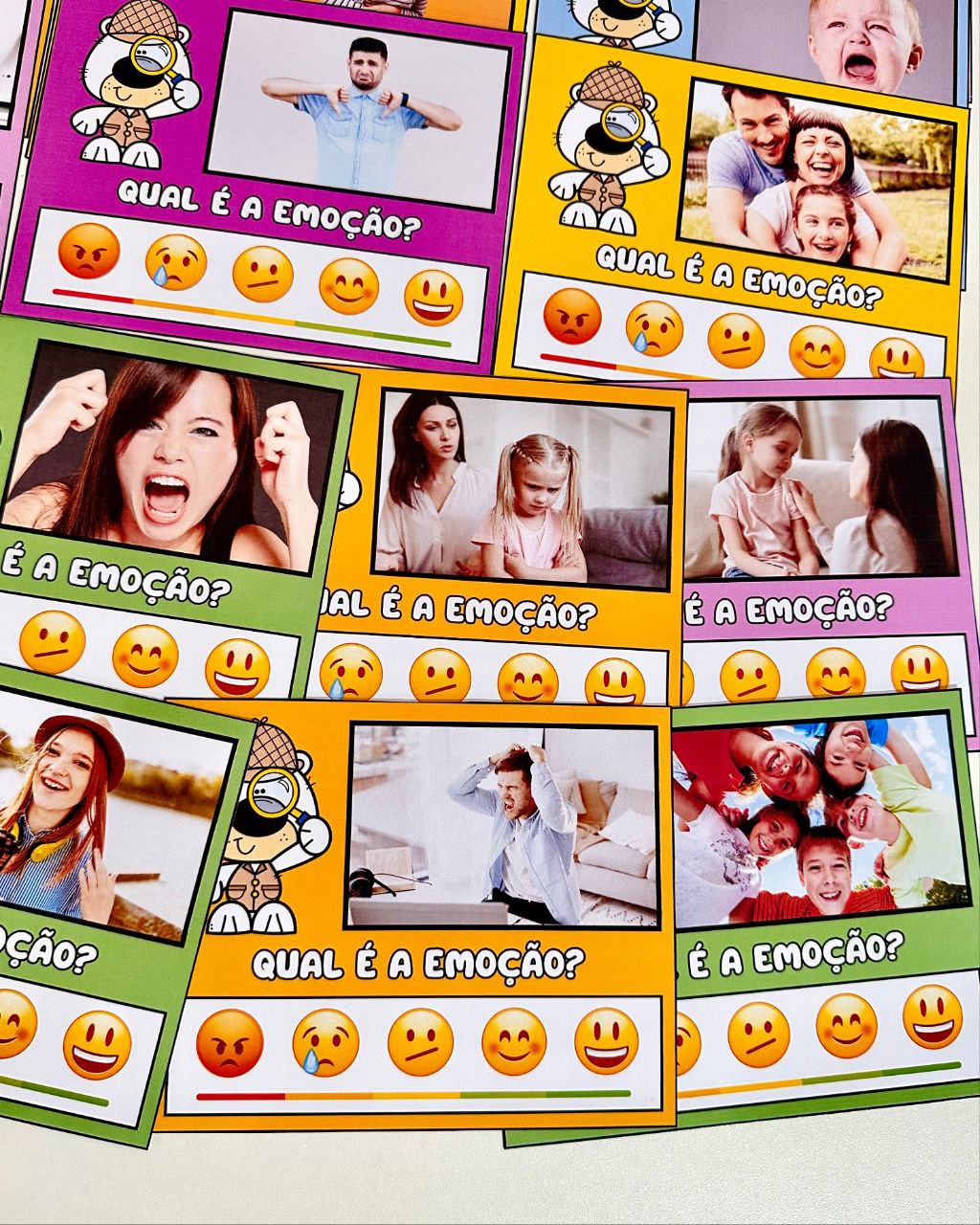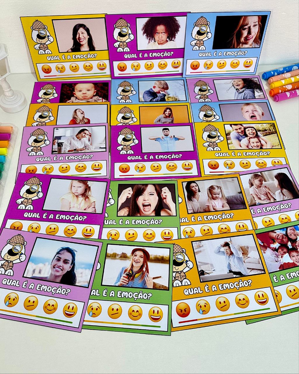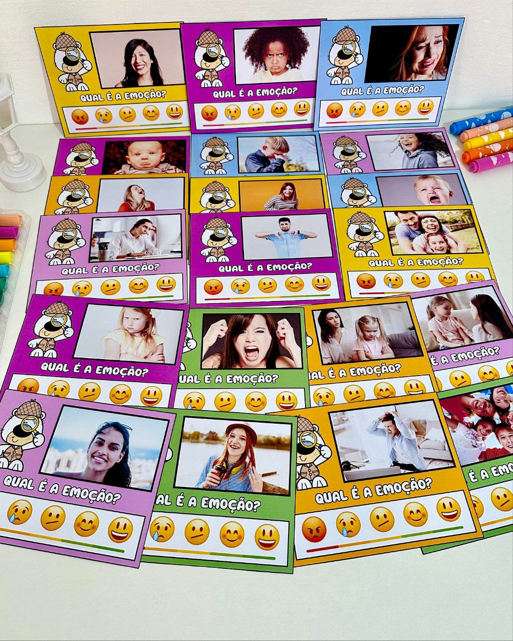 📄 O arquivo é enviado em PDF pronto para impressão e contém 20 fichas coloridas com diferentes emoções.