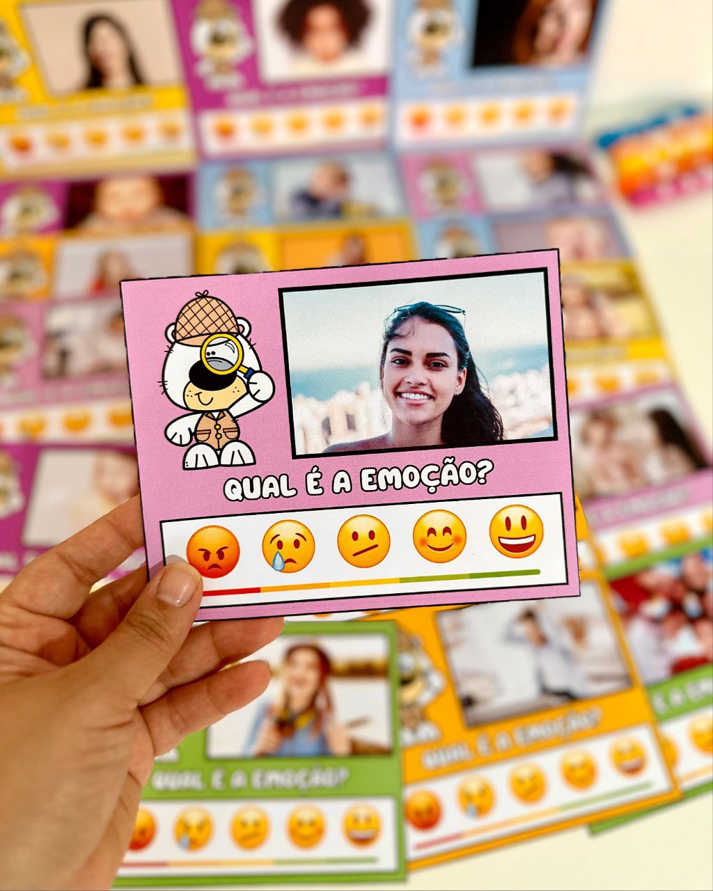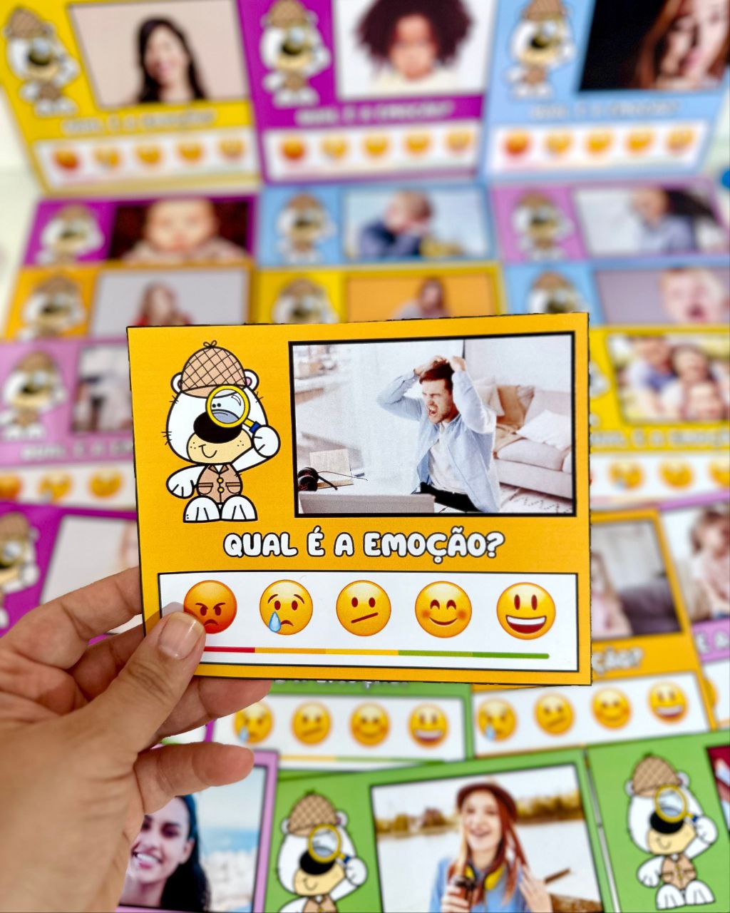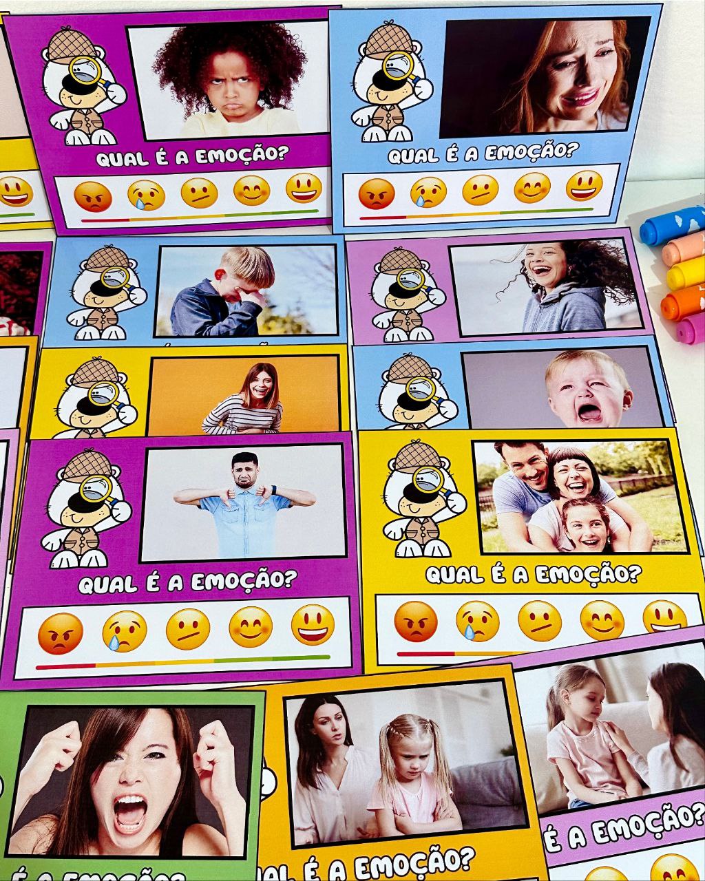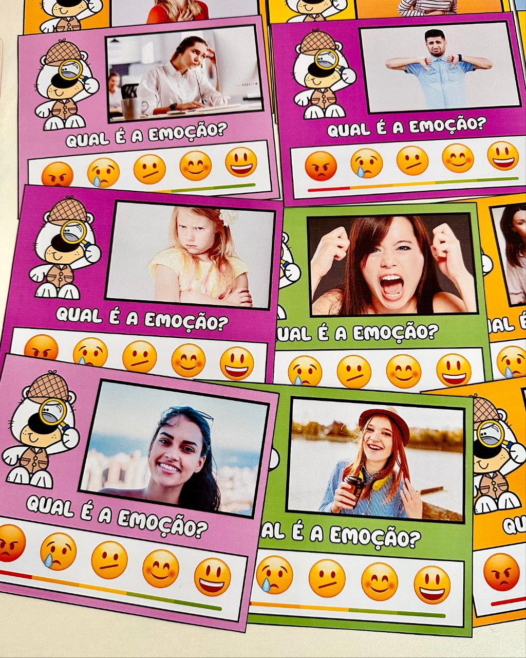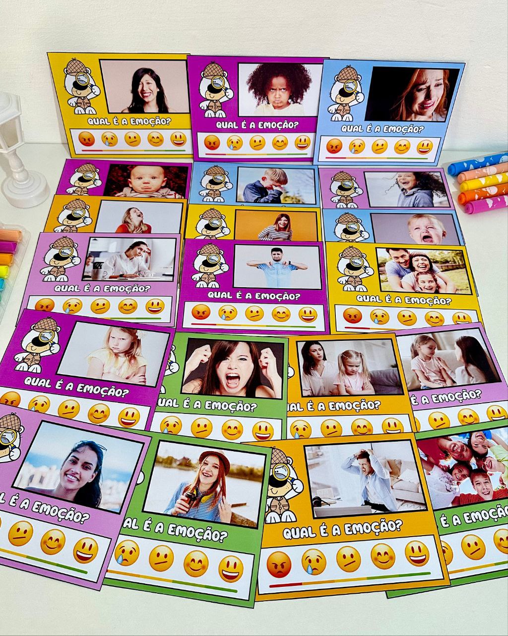📄 O arquivo é enviado em PDF pronto para impressão e contém 20 fichas coloridas com diferentes emoções.