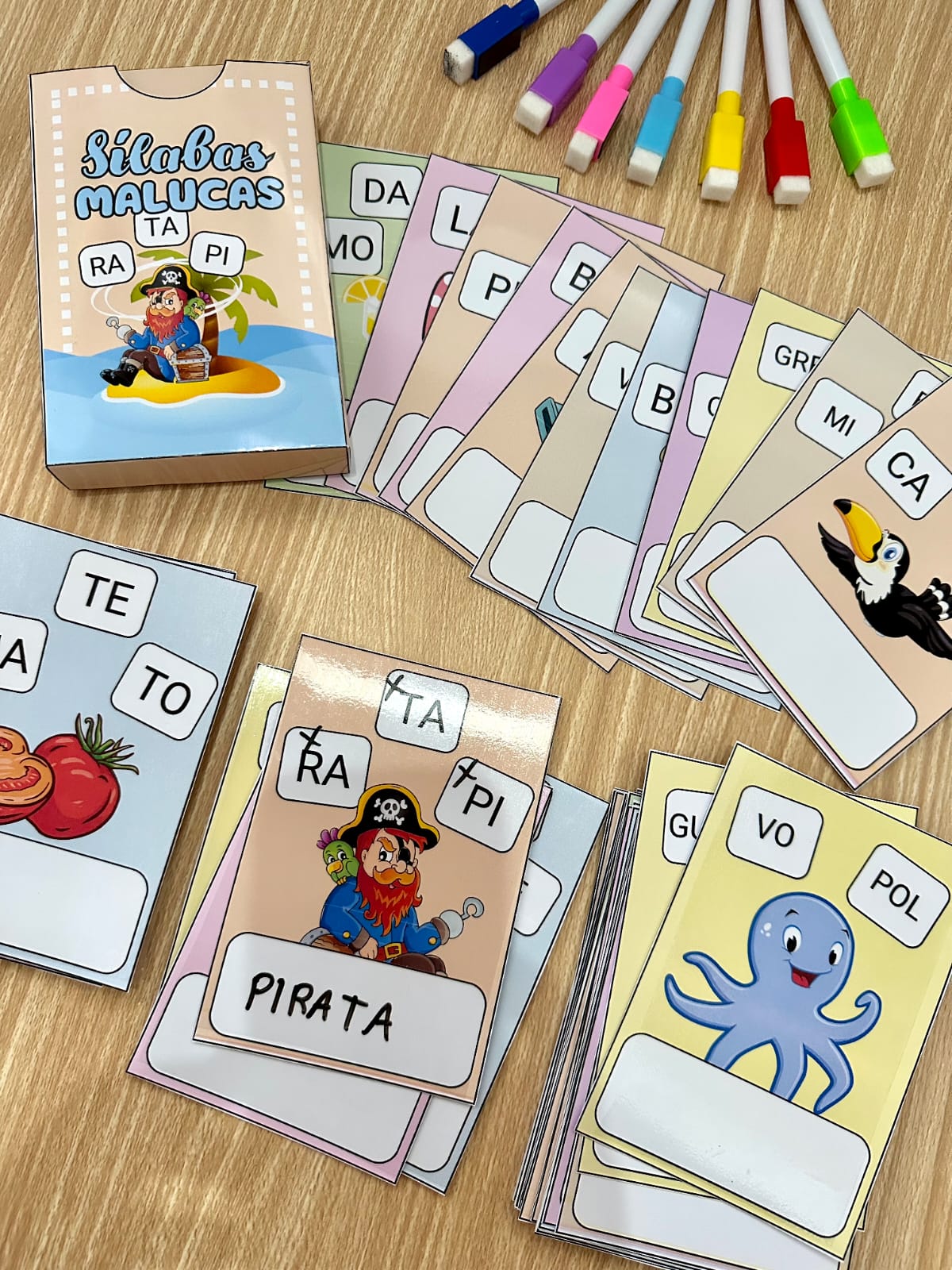 O arquivo Sílabas Malucas inclui 72 fichas de palavras